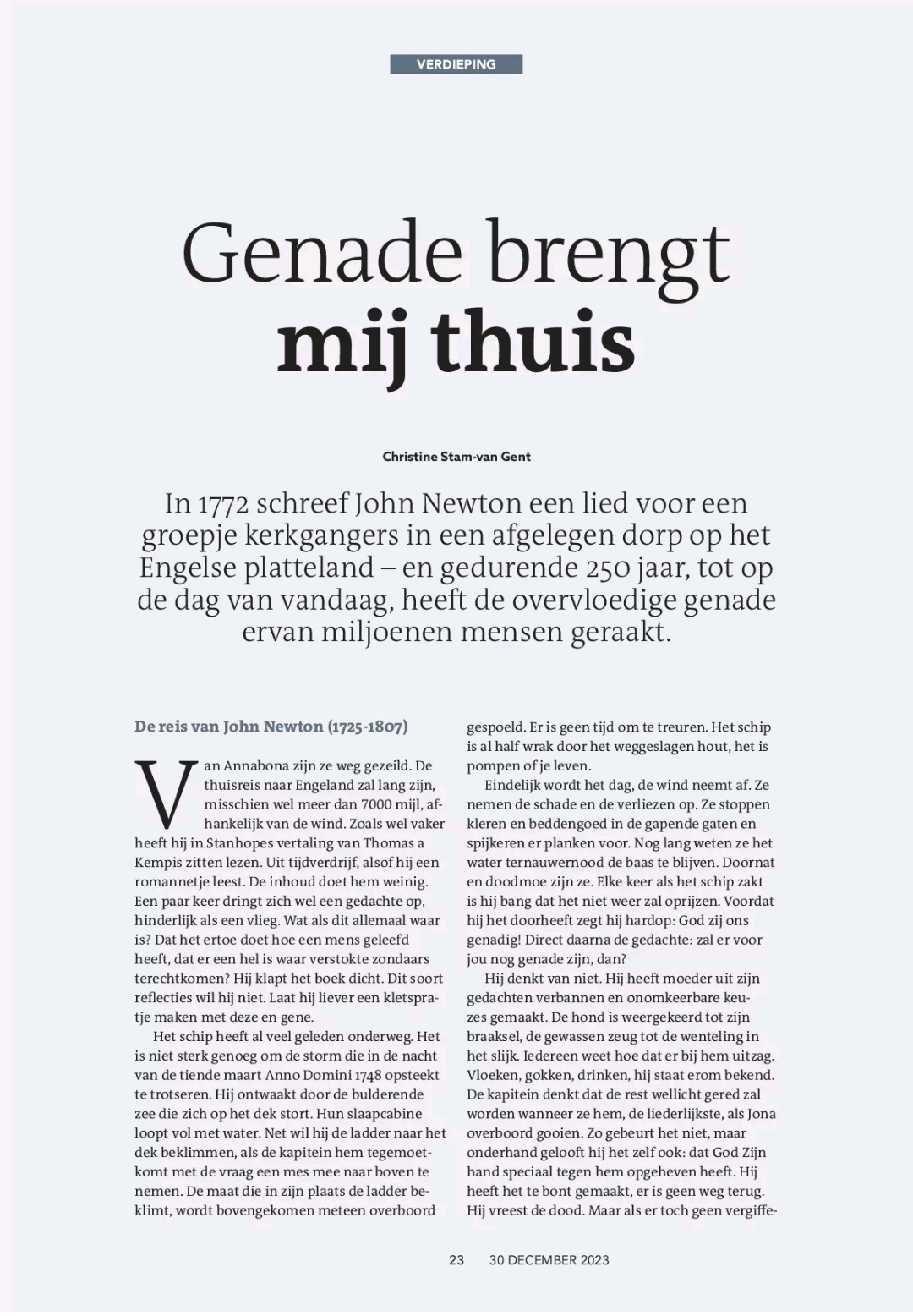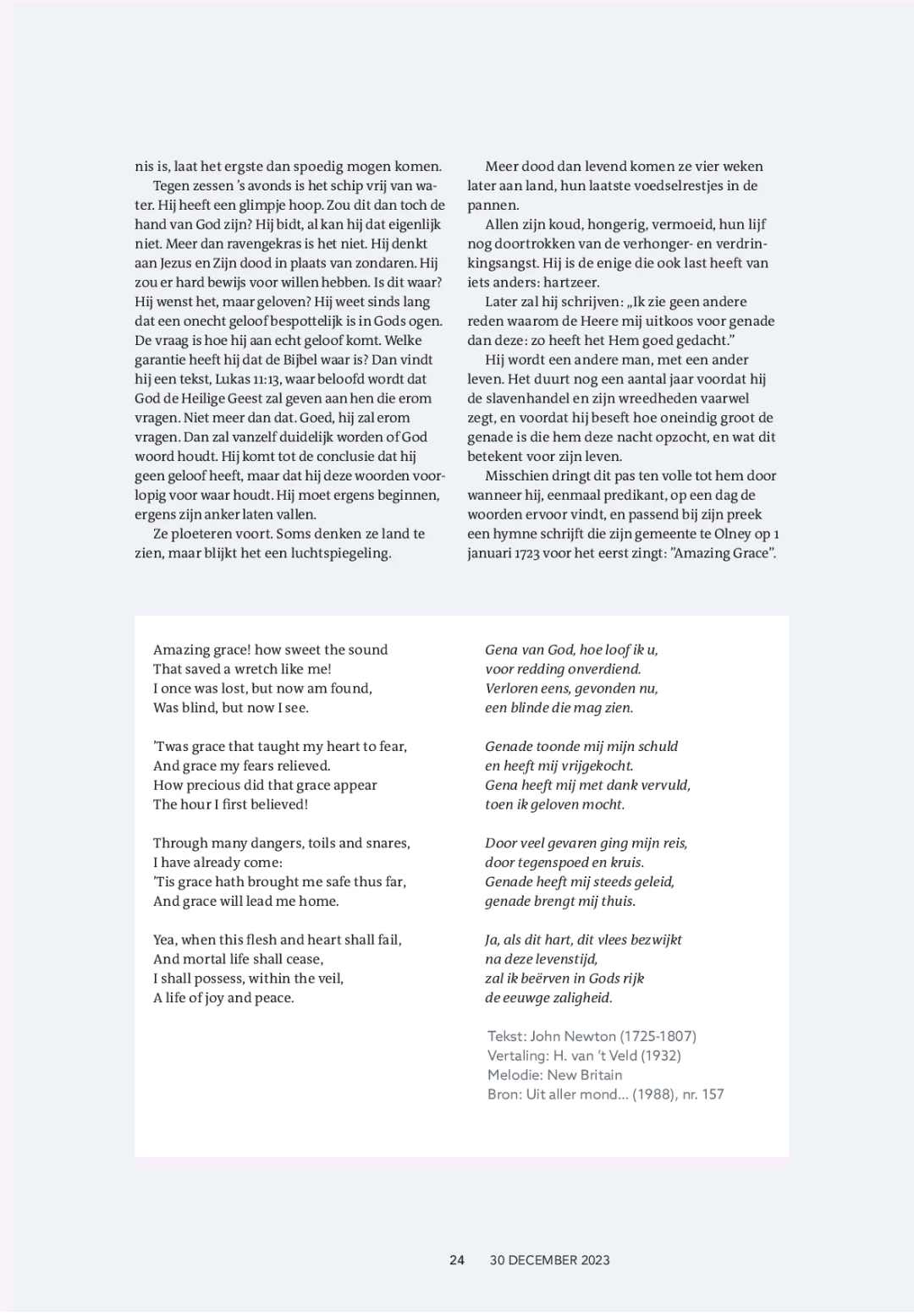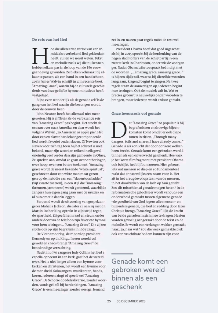 Ook schreef ik voor de oudejaarsbijlage van het Reformatorisch Dagblad een essay over het 250-jarig jubileum van ‘Amazing Grace’.