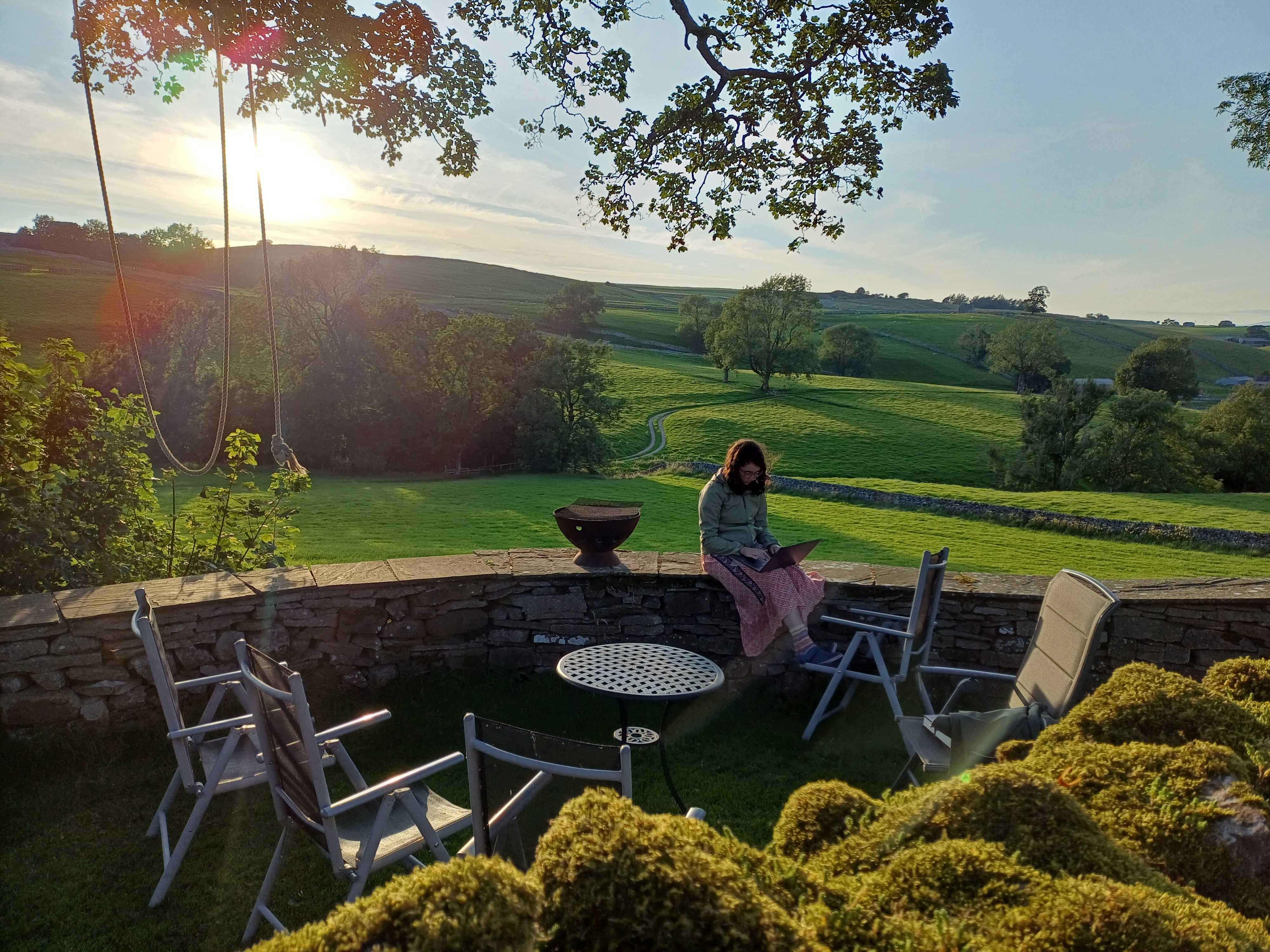 Noord-Engeland is wat dat betreft ideaal. Op het terras gezeten laat ik ogen en gedachten gaan over het groen, de eindeloze slingermuurtjes van gestapelde stenen waartussen vogeltjes schuilen. God kun je niet alleen uit de natuur leren kennen, maar een landschap als dit maakt geloven in Zijn bestaan toch minder moeilijk. Alsof woord en beeld meer een eenheid vormen.
